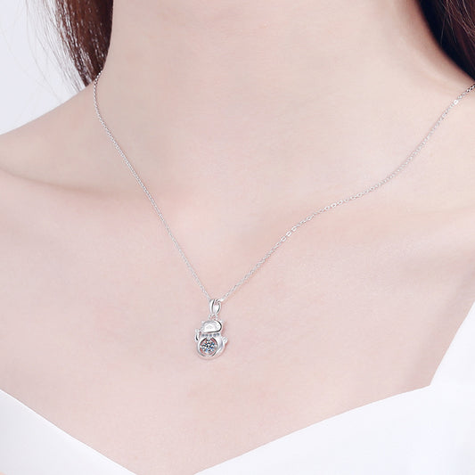 S925 Sterling Silver Moissanite Lucky Cat Necklace
