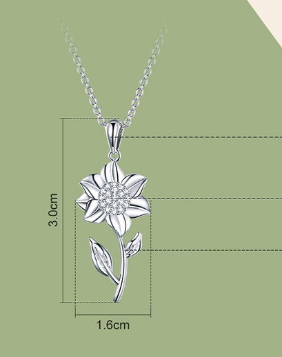 SUNFLOWER NECKLACE .925 white gold and sterling silver necklace